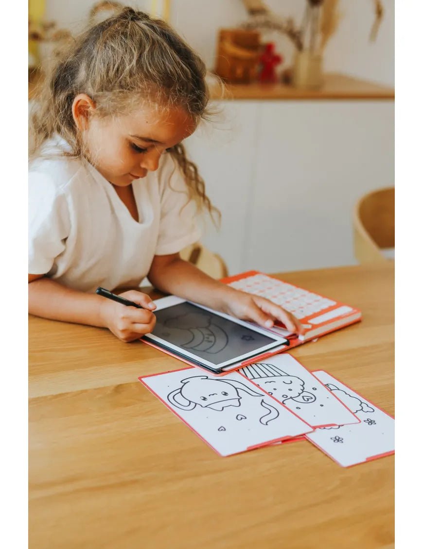 KIDYDRAW-MINI to cyfrowy szkicownik z ekranem LCD, który zapewnia dziecku nieograniczoną przestrzeń do rysowania i nauki. Zawiera 30 gotowych rysunków do odwzorowania za pomocą dołączonego rysika oraz 5 unikalnych motywów do wyboru. Lekki, kompaktowy i łatwy do zabrania wszędzie – idealny towarzysz małego artysty w domu, w podróży i na spacerze.