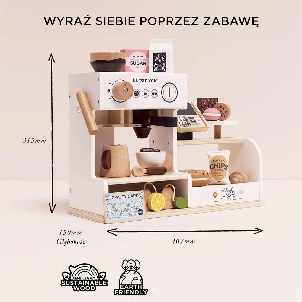 Dwustronna kawiarnia to kompleksowe stoisko, które zawiera wszystko co potrzebne, aby doświadczać zarówno bycia baristą jak i uroczym klientem!
