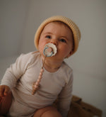 Zaspokój u swojego Maluszka naturalny odruch ssania ze smoczkiem kauczukowym dla noworodów i niemowląt FRIGG Daisy.
