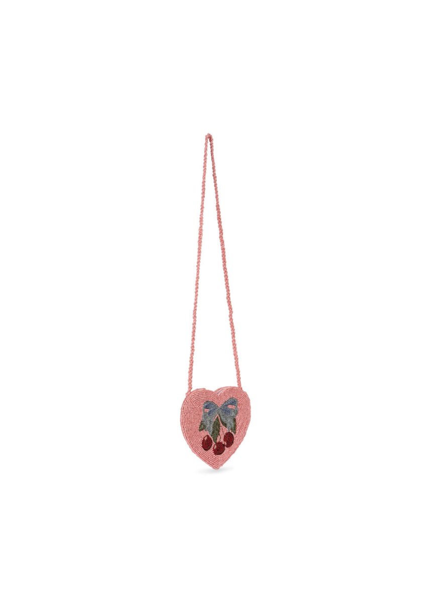 Urocza, torebka na ramię w kształcie serca, ozdobiona koralikami przyszywanymi ręcznie.