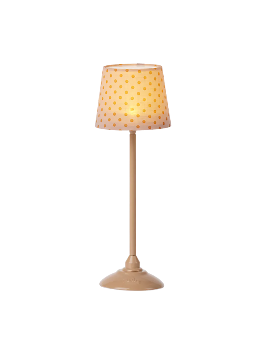 Piękna miniaturowa lampa podłogowa Maileg to pozycja obowiązkowa. Lampa rozświetli pokój w domku dla lalek delikatnym tonem - pamiętaj, aby wyłączyć światło, gdy przyjaciele pójdą spać. Bateria może zostać wymieniona przez osobę dorosłą.