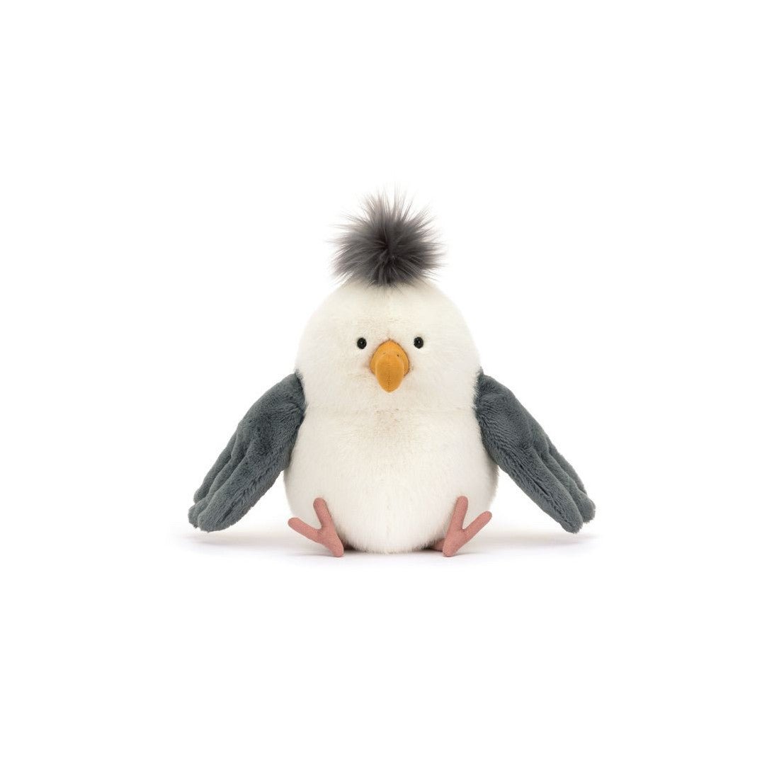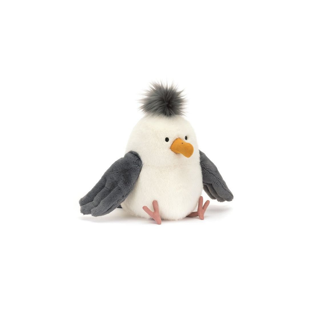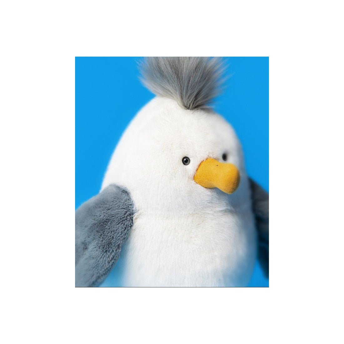 Mewa Chip to uroczy ptaszek o błyszczących, ciekawskich oczkach, żółtym dziubku, mięciutkim białoszarym upierzeniu,uroczym ogonku, bujną czupryną i zamszowymi łapkami. Wspaniały towarzysz zabaw i piękna dekoracja pokoju dziecięcego. Mewa została uszyta z najwyższej jakości, trwałych i bezpiecznych dla dzieci materiałów.