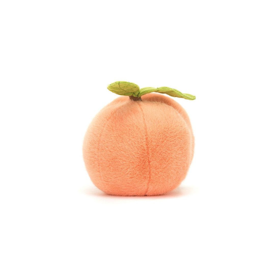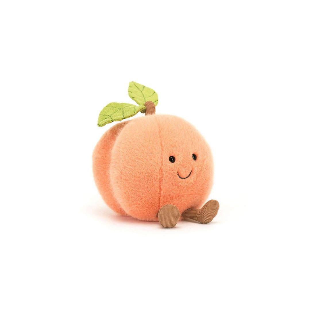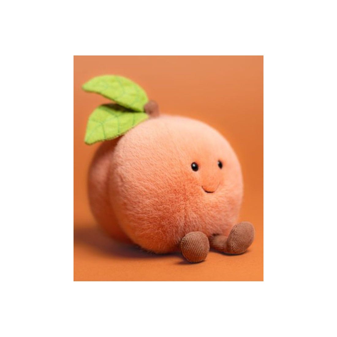 Zabawna Brzoskwinia marki Jellycat to bardzo miły i przyjemny w dotyku pluszak. Ma pulchne futerko w kolorze morelowym, radosny uśmiech i uroczy kok na główce. Ten dający się zgniatać słodziak uwielbia się przytulać i bawić. Pluszak został uszyty z najwyższej jakości, trwałych i bezpiecznych dla dzieci materiałów.