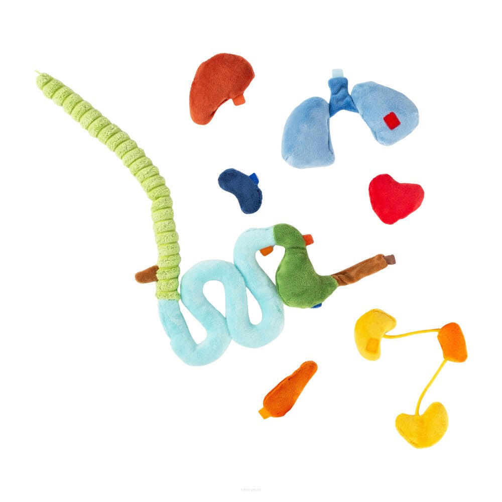 Niezwykła miękka lalka Erwin powstała we współpracy z wybitnym profesorem medycyny Dietrichem Gronemeyerem i uczy dziecko anatomii ciała. Ta pluszowa przytulanka ma otwierany brzuszek, w którym znajdują się pluszowe: serce, płuca, żołądek, nerki i inne narządy, które można wyjmować i wkładać w odpowiednie miejsce bez końca dzięki kodowaniu kolorami i mocowaniom na rzepy. Do lalki jest dołączona książeczka z obrazkami, która wyjaśnia funkcje i znaczenie organów ludzkiego ciała. Przytulankę można prać w pralce, dzięki czemu będzie zawsze gotowa na nowe przygody!