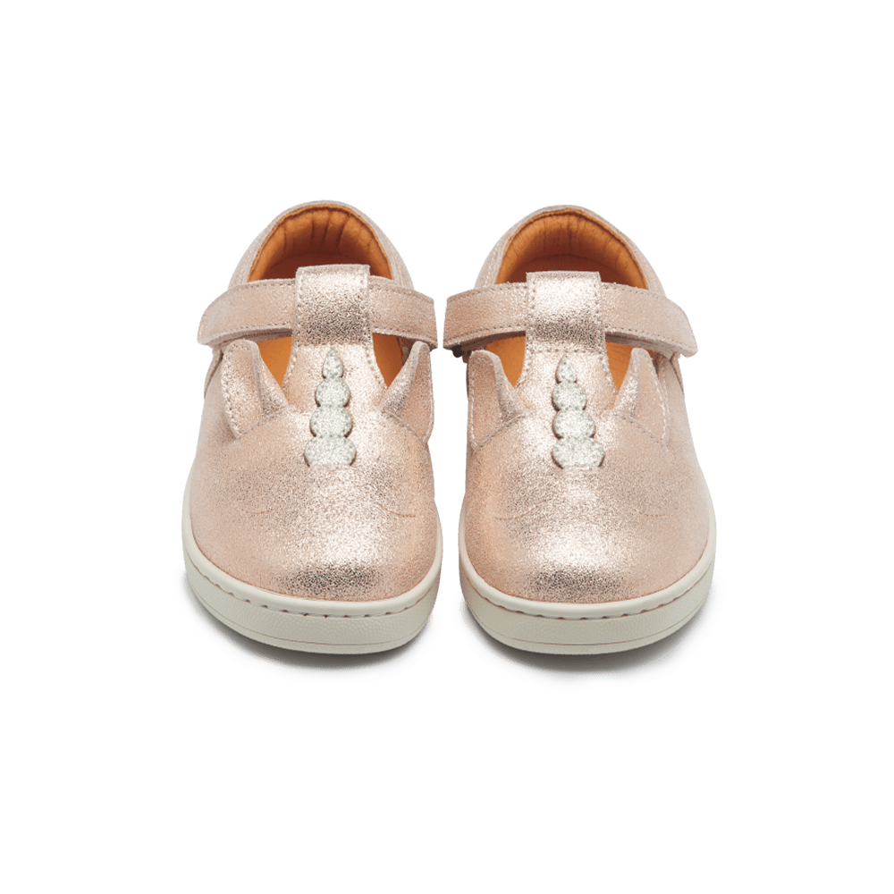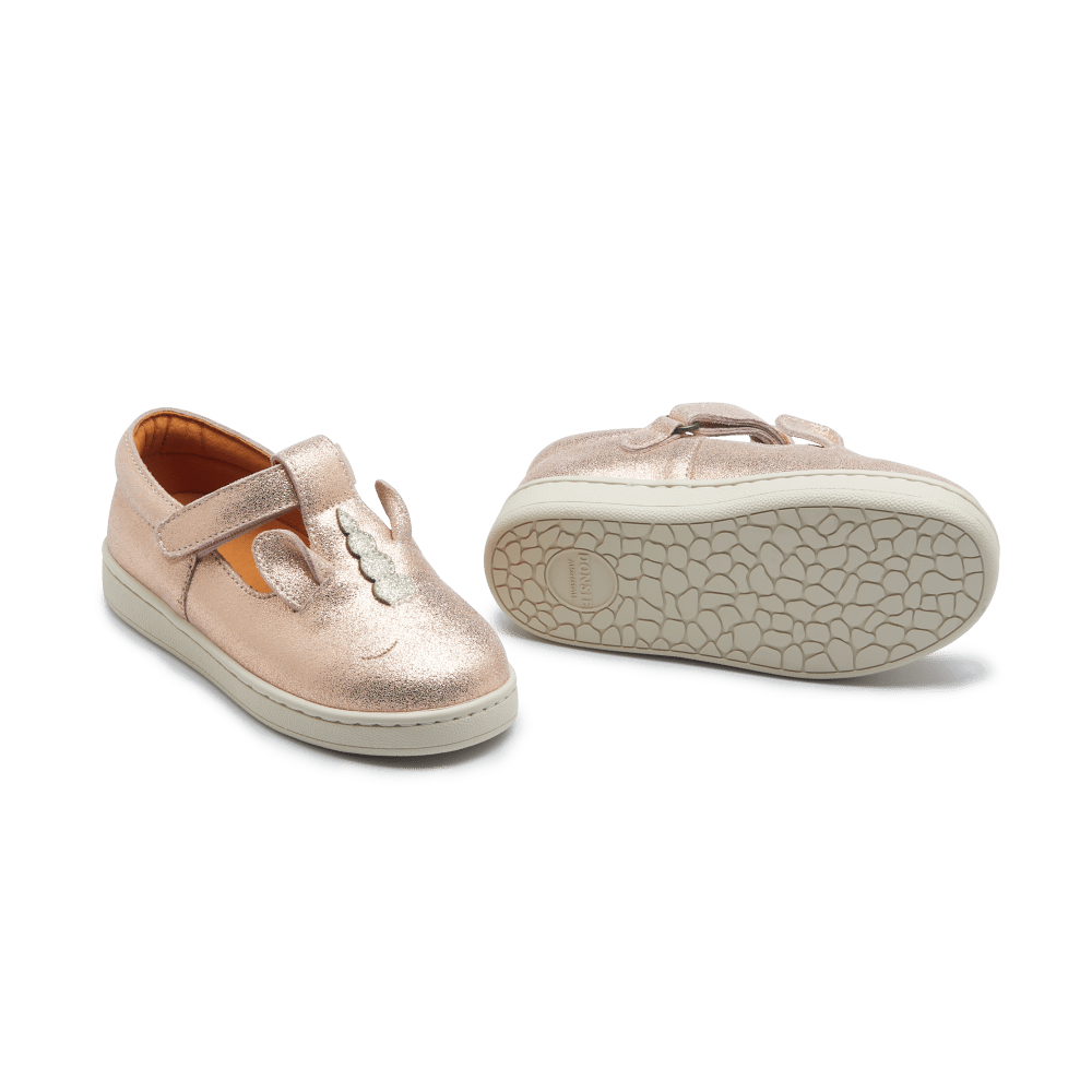 Skórzane buty z motywem Jednorożca Esterre to zaproszenie do letnich przygód w bajkowym stylu. Wykonane w 100% z wysokiej jakości skóry naturalnej w delikatnym, pudrowo-metalicznym odcieniu, zachwycają uroczymi detalami jednorożca Donsje. Regulowane zapięcia na rzep sprawiają, że zakładanie i zdejmowanie butów jest szybkie i wyjątkowo wygodne — idealne na codzienne letnie chwile pełne magii.
