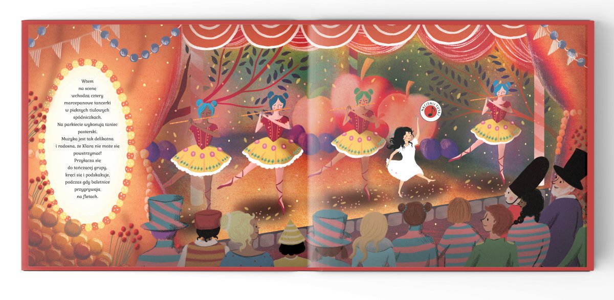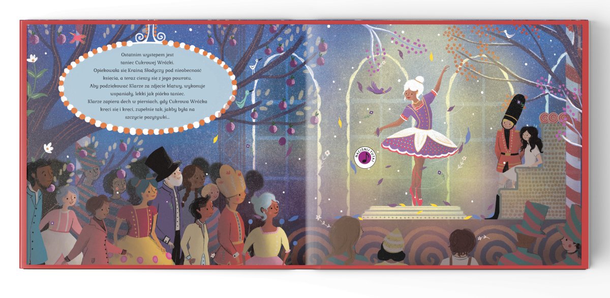 Naciśnij nutkę na każdej stronie, by dzięki muzyce Czajkowskiego poczuć atmosferę magicznego świata zabawek i ich ekscytujących przygód. Prosty tekst, piękne ilustracje i wyjątkowa muzyka – niezależnie od wieku czytelnika – rozbudzą wyobraźnię i wciągną w wir zaczarowanych przygód Klary.