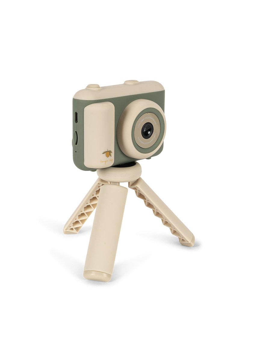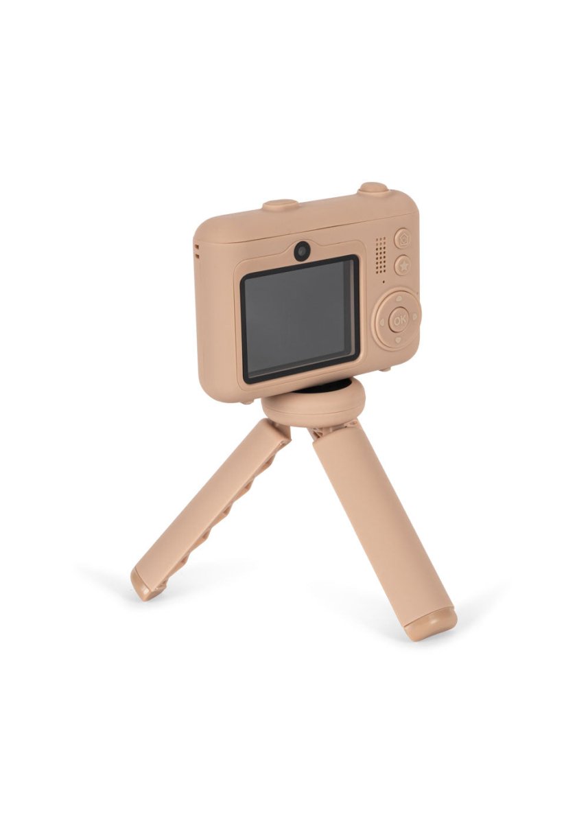Wielofunkcyjny aparat fotograficzny cyfrowy z ekranem podglądu w wysokiej rozdzielczości, który pozwala dzieciom natychmiast zobaczyć wykonane zdjęcia. Wyposażony w zabawną funkcję selfie, tryb nagrywania wideo oraz trzy wbudowane gry. W zestawie znajduje się praktyczny statyw stołowy, ułatwiający robienie autoportretów.