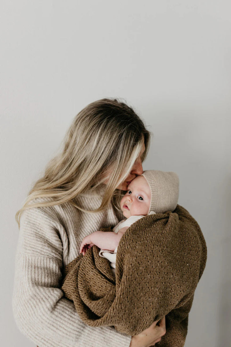 Miękka, bezszwowa czapeczka dla niemowląt wykonana w 100% z wełny merino.