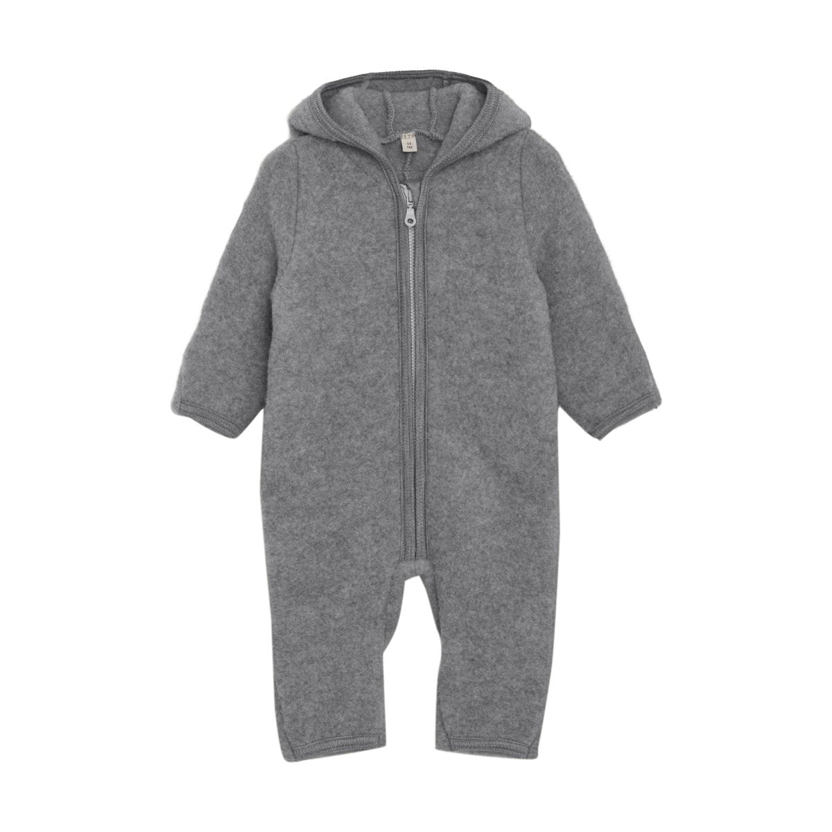 Ciepły kombinezon z wełny merino zapinany na zamek błyskawiczny z uszkami misia