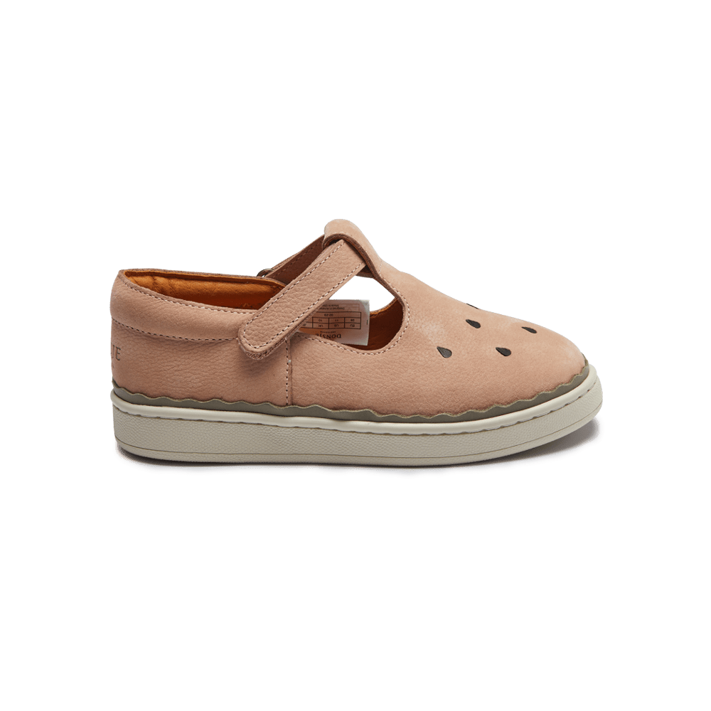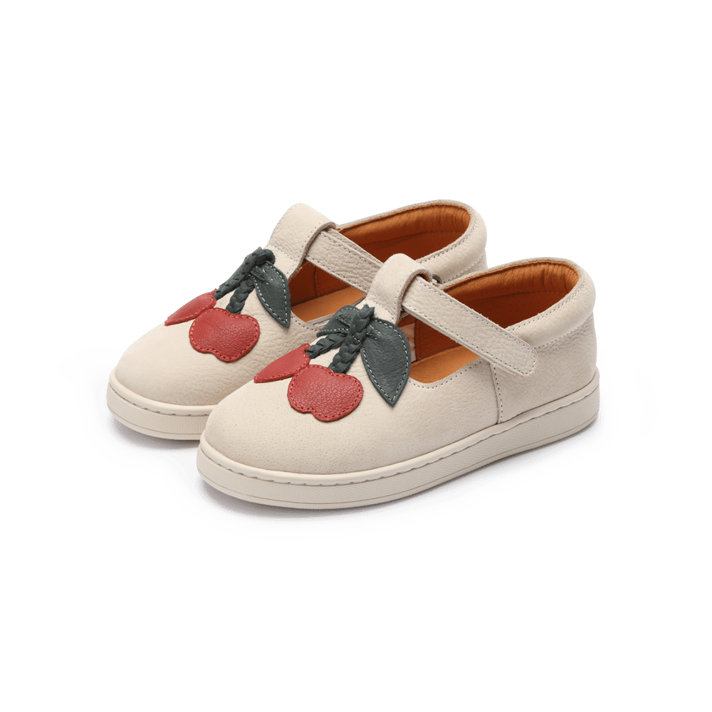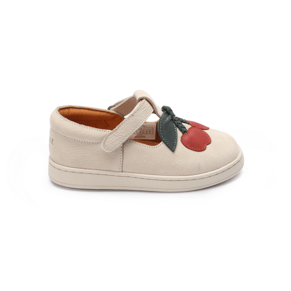 Buciki Lowy zachwycają charakterem i wygodą. Klasyczny fason typu T-bar w połączeniu z zabawnym motywem wiśni Donsje nadaje im wyjątkowego uroku. Wykonane w 100% z wysokiej jakości skóry naturalnej, z regulowanymi zapięciami na rzep, zapewniają łatwe zakładanie i komfort noszenia. Idealne zarówno na spacery po ogrodzie, jak i rodzinne spotkania — dodają stylizacjom radosnego akcentu.